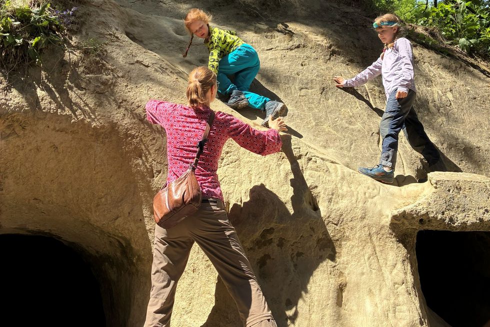 Die Schifffahrt von Murten nach Praz dauert etwa 15 Minuten. Auch an der Anlegestelle befindet sich ein Spielplatz sowie Toiletten und eine Gartenbeiz. Der Weg hinauf zur Grotte verläuft durch die Rebberge mit einem schönen Blick auf den See. Dann geht es durch den Wald und nach einem kurzen steilen Abschnitt ist nach rund 30 Minuten das Zwischenziel erreicht. Die Grotten sind Teil des historischen Pfades am Mont Vully: Schautafeln informieren über die Überbleibsel aus dem Ersten Weltkrieg.
